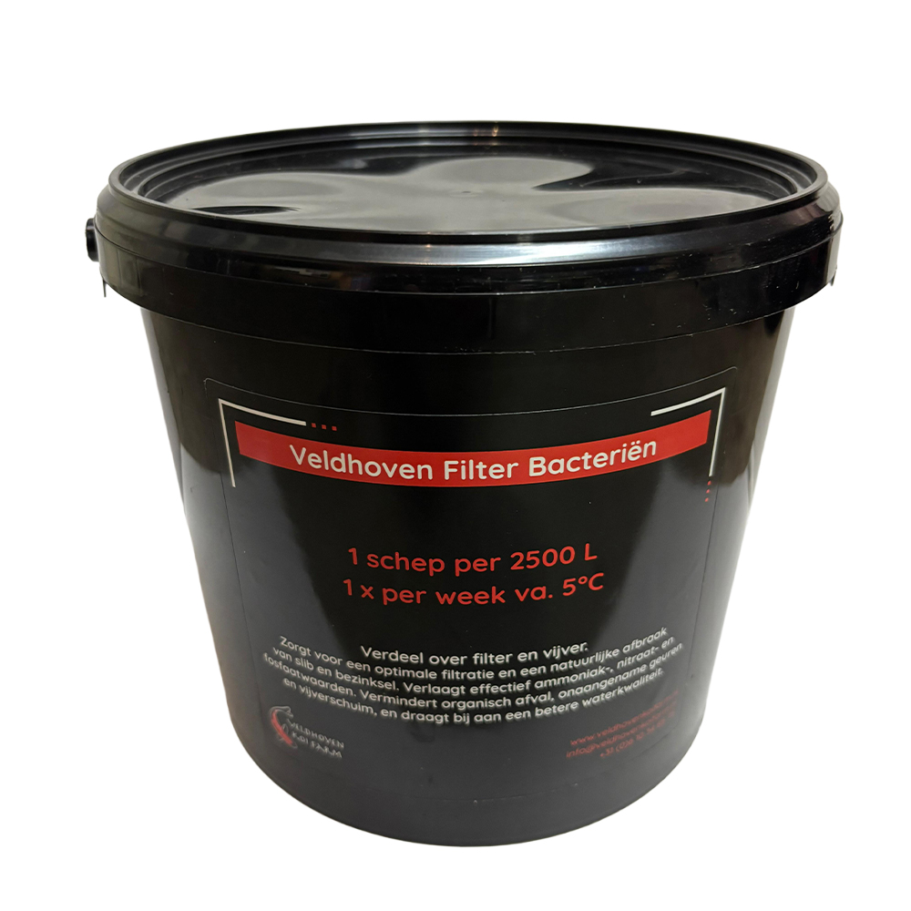 VKF Filter Bacteriën zorgen voor een effectieve filtratie en ondersteunen de natuurlijke afbraak van slib en bezinksel. Ze verlagen ammoniak-, nitraat- en fosfaatwaarden en verminderen organisch afval, geuren en vijverschuim, wat resulteert in een betere waterkwaliteit.